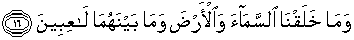 16. Dan tidaklah Kami ciptakan Iangit dan bumi dan segala yang ada di antara keduanya dengan bermain-main