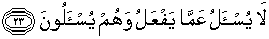 23. Dia tidak ditanya tentang apa yang diperbuat-Nya dan merekalah yang akan ditanyai.