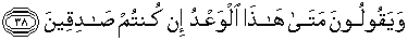 38. Mereka berkata: "Kapankah janji itu akan datang, jika kamu sekaIian adalah orang-orang yang benar?"