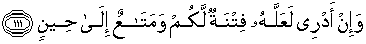111. Dan aku tiada mengetahui, boleh jadi hal itu