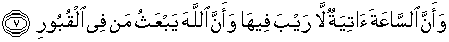 7. dan sesungguhnya hari kiamat itu pastilah datang, tak ada keraguan padanya; dan bahwasanya Allah membangkitkan semua orang di dalam kubur.
