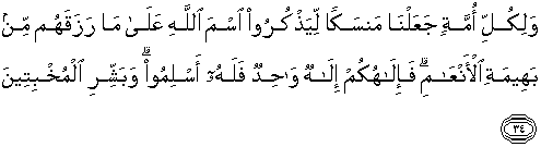 34. Dan bagi tiap-tiap umat telah Kami syariatkan penyembelihan