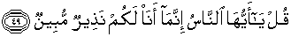 49. Katakanlah: "Hai manusia, sesungguhnya aku adalah seorang pemberi peringatan yang nyata kepada kamu."