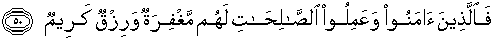 50. Maka orang-orang yang beriman dan beramal saleh, bagi mereka ampunan dan rezki yang mulia.