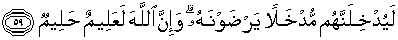 59. Sesungguhnya Allah akan memasukkan mereka ke dalam suatu tempat (syurga) yang mereka menyukainya. Dan sesungguhnya Allah Maha mengetahui lagi Maha Penyantun.