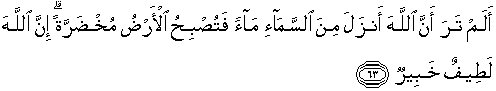 63. Apakah kamu tiada melihat, bahwasanya Allah menurunkan air dari langit, lalu jadilah bumi itu hijau? Sesungguhnya Allah Maha Halus lagi Maha Mengetahui.