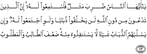 73. Hai manusia, telah dibuat perumpamaan, maka dengarkanlah