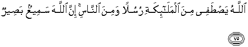 75. Allah memilih utusan-utusan-(Nya) dari malaikat dan dari manusia; sesungguhnya Allah Maha Mendengar lagi Maha Melihat.