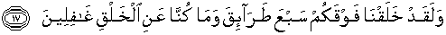 17. Dan sesungguhnya Kami telah menciptakan di atas kamu tujuh