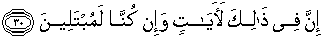 30. Sesungguhnya pada (kejadian) itu benar-benar terdapat beberapa tanda (kebesaran Allah), dan sesungguhnya Kami menimpakan azab (kepada kaum Nuh itu).