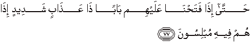 77. Hingga apabila Kami bukakan untuk mereka suatu pintu tempat azab yang amat sangat (di waktu itulah) tiba-tiba mereka menjadi putus asa.