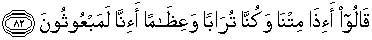 82. Mereka berkata: "Apakah betul, apabila kami telah mati dan kami telah menjadi tanah dan tulang belulang, apakah sesungguhnya kami benar-benar akan dibangkitkan ?