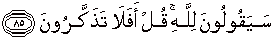 85. Mereka akan menjawab: "Kepunyaan Allah." Katakanlah: "Maka apakah kamu tidak ingat?"