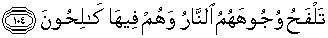104. Muka mereka dibakar api neraka, dan mereka di dalam neraka itu dalam keadaan cacat.