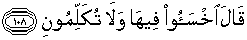 108. Allah berfirman: "Tinggallah dengan hina di dalamnya, dan janganlah kamu berbicara dengan Aku.