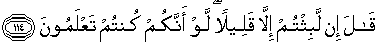 114. Allah berfirman: "Kamu tidak tinggal (di bumi) melainkan