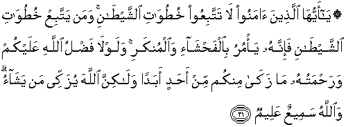 21. Hai orang-orang yang beriman, janganlah kamu mengikuti langkah-