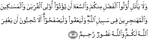 22. Dan janganlah orang-orang yang mempunyai kelebihan dan kelapangan