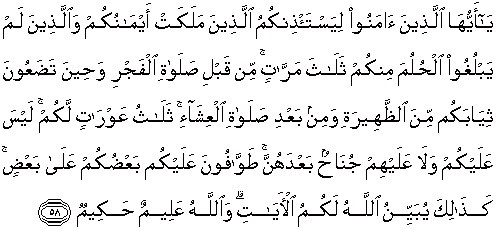 58. Hai orang-orang yang beriman, hendaklah budak-budak (lelaki dan