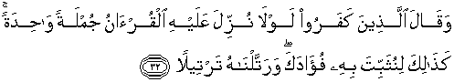 32. Berkatalah orang-orang yang kafir: "Mengapa Al Quran itu