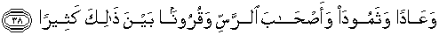 38. dan (Kami binasakan) kaum 'Aad dan Tsamud dan penduduk