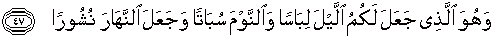 47. Dialah yang menjadikan untukmu malam (sebagai) pakaian, dan tidur untuk istirahat, dan Dia menjadikan siang untuk bangun berusaha.