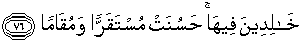 76. mereka kekal di dalamnya. Syurga itu sebaik-baik tempat menetap dan tempat kediaman.