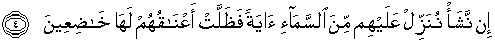 4. Jika kami kehendaki niscaya Kami menurunkan kepada mereka mukjizat dari langit, maka senantiasa kuduk-kuduk mereka tunduk kepadanya.