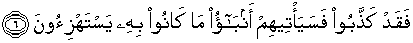 6. Sungguh mereka telah mendustakan (Al Quran), maka kelak akan datang kepada mereka (kenyataan dari) berita-berita yang selalu mereka perolok-olokkan.