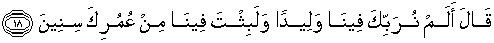 18. Fir'aun menjawab: "Bukankah kami telah mengasuhmu di antara