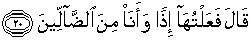 20. Berkata Musa: "Aku telah melakukannya, sedang aku di waktu itu termasuk orang-orang yang khilaf.