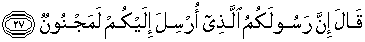 27. Fir'aun berkata: "Sesungguhnya Rasulmu yang diutus kepada kamu sekalian benar-benar orang gila."