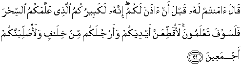 49. Fir'aun berkata: "Apakah kamu sekalian beriman kepada