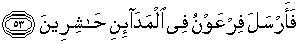 53. Kemudian Fir'aun mengirimkan orang yang mengumpulkan (tentaranya) ke kota-kota.