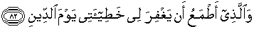 82. dan Yang amat kuinginkan akan mengampuni kesalahanku pada hari kiamat."