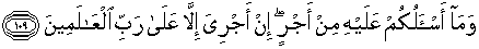 109. Dan aku sekali-kali tidak minta upah kepadamu atas ajakan-ajakan itu; upahku tidak lain hanyalah dari Tuhan semesta alam.