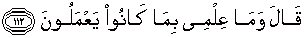 112. Nuh menjawab: "Bagaimana aku mengetahui apa yang telah mereka kerjakan?