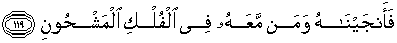 119. Maka Kami selamatkan Nuh dan orang-orang yang besertanya di dalam kapal yang penuh muatan.