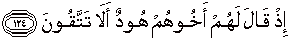 124. Ketika saudara mereka Hud berkata kepada mereka: "Mengapa kamu tidak bertakwa?