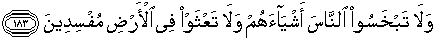 183. Dan janganlah kamu merugikan manusia pada hak-haknya dan janganlah kamu merajalela di muka bumi dengan membuat kerusakan;