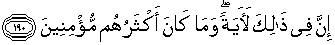 190. Sesungguhnya pada yang demikian itu benar-benar terdapat tanda (kekuasaan Allah), tetapi kebanyakan mereka tidak beriman.