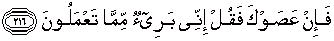 216. Jika mereka mendurhakaimu maka katakanlah: "Sesungguhnya aku tidak bertanggung jawab terhadap apa yang kamu kerjakan";