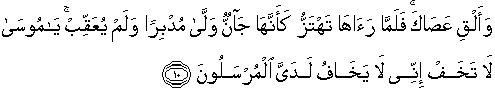 10. dan lemparkanlah tongkatmu." Maka tatkala (tongkat itu