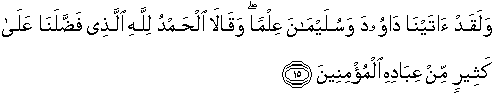 15. Dan sesungguhnya Kami telah memberi ilmu kepada Daud dan