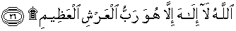 26. Allah, tiada Tuhan Yang disembah kecuali Dia, Tuhan Yang mempunyai 'Arsy yang besar."