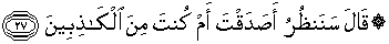 27. Berkata Sulaiman: "Akan kami lihat, apa kamu benar, ataukah kamu termasuk orang-orang yang berdusta.