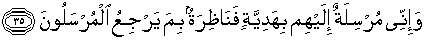 35. Dan sesungguhnya aku akan mengirim utusan kepada mereka dengan (membawa) hadiah, dan (aku akan) menunggu apa yang akan dibawa kembali oleh utusan-utusan itu."