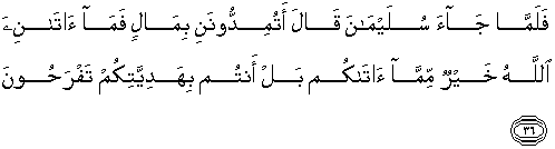 36. Maka tatkala utusan itu sampai kepada Sulaiman, Sulaiman
