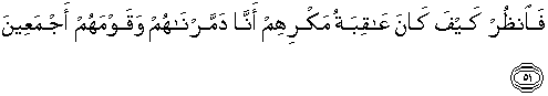 51. Maka perhatikanlah betapa sesungguhnya akibat makar mereka itu, bahwasanya Kami membinasakan mereka dan kaum mereka semuanya.