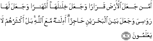 61. Atau siapakah yang telah menjadikan bumi sebagai tempat